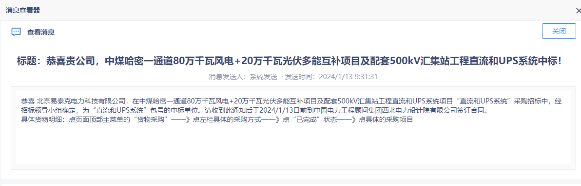 龍年迎來(lái)開(kāi)門紅,我們公司再傳喜訊,接連中標(biāo)!這是我們?cè)谛碌囊荒昀锼蚺业拈_(kāi)端,也標(biāo)志著我們?cè)跇I(yè)界的實(shí)力與日俱增。我公司憑借雄厚的綜合實(shí)力,接連中標(biāo)吐魯番市托克遜縣烏斯通光熱+光伏一體化項(xiàng)目、中煤哈密一通道80萬(wàn)千瓦風(fēng)電+20萬(wàn)千瓦光伏多能互補(bǔ)項(xiàng)目、阿克塞哈薩克族自治縣匯東新能源有限責(zé)任公司光熱+光伏試點(diǎn)項(xiàng)目;易泰克在國(guó)內(nèi)形勢(shì)大好的基礎(chǔ)上,同時(shí)拓展了國(guó)外業(yè)務(wù),參與了摩洛哥電力公司150MVA變壓器項(xiàng)目、烏茲別克斯坦錫爾河二期1600MW聯(lián)合循環(huán)電站項(xiàng)目、世界最大單體反滲透海水淡化項(xiàng)目——沙特拉比格海水淡化項(xiàng)目、伊拉克安巴爾電廠1642.6W聯(lián)合循環(huán)機(jī)組項(xiàng)目。